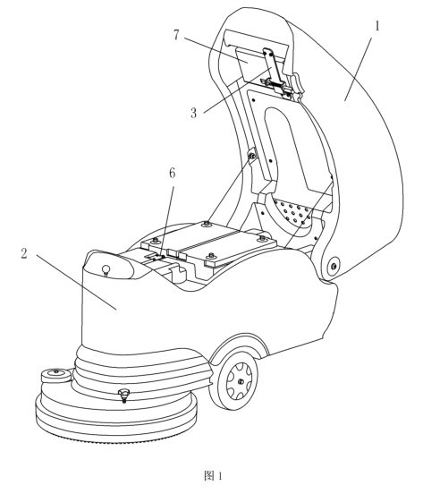 洗地機當前的設計中清污兩個水箱通常使用類似皮箱的外用搭扣進行鎖緊,其存在幾個問題:1、搭扣外露,影響洗地機的整體美觀;2、洗地過程中的震動容易導致搭扣松脫;3、遇到地面障礙或不平處,需要抬起機器前端時,污水箱需要靠搭扣的扣緊力作用下跟隨清水箱一并抬起,經常受力,搭扣容易老化斷裂;4、搭扣需要手動進行鎖緊或打開,操作復雜。